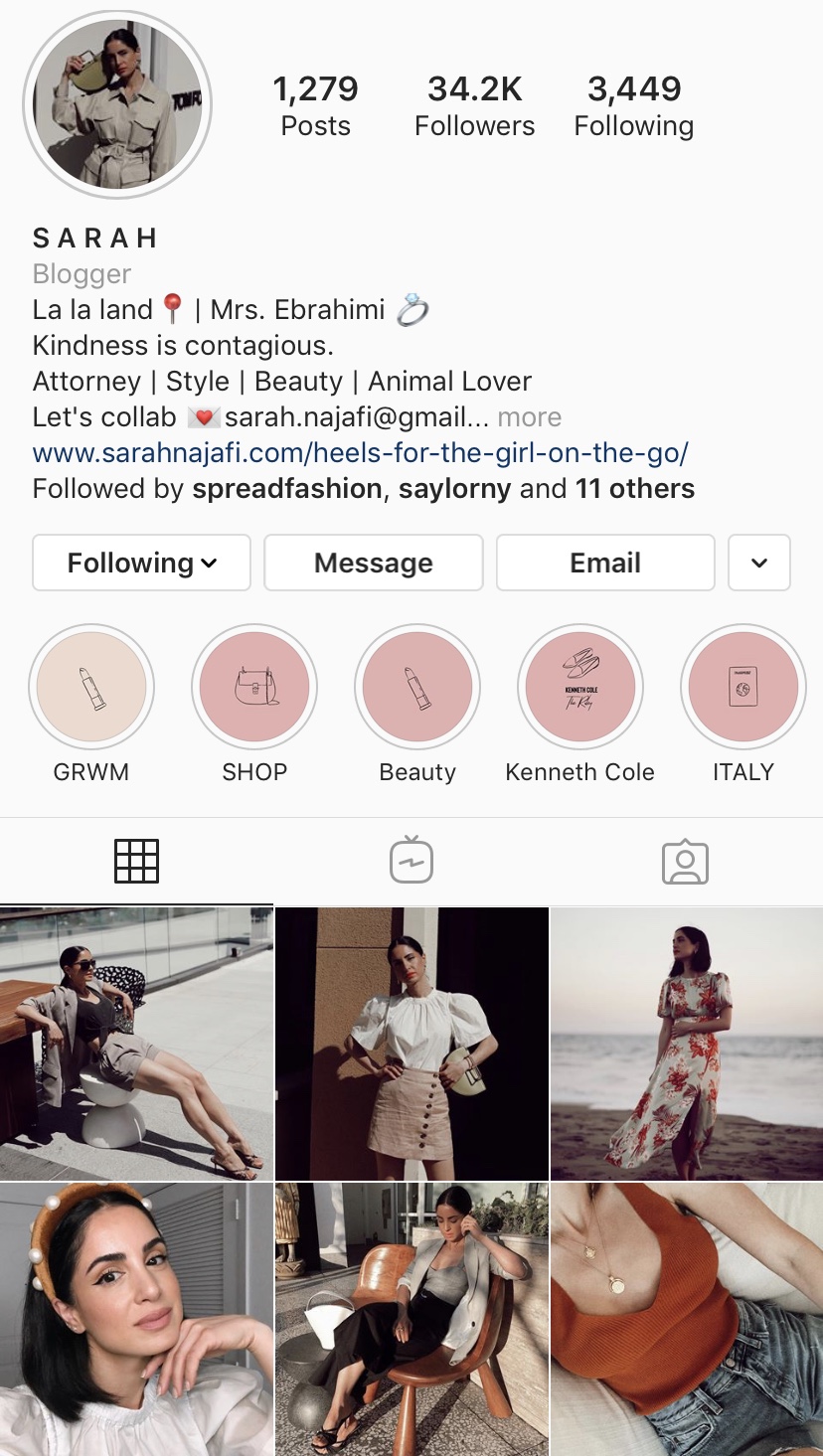Sarah Najafi Is a style and beauty blogger with about 35k followers on instagram, she regularly uses Instagram Stories to engage with users.